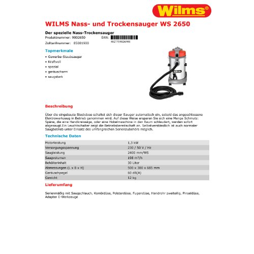 Produktinformationen "WILMS Nass- und Trockensauger WS 2650"